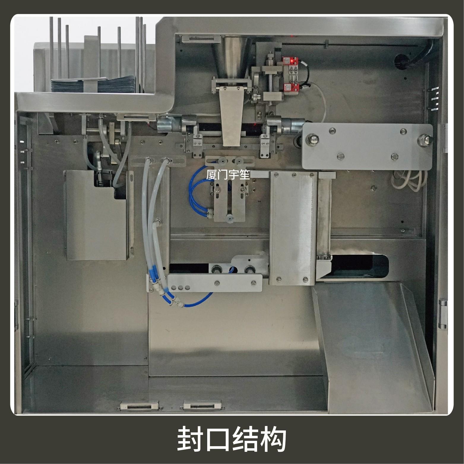 2、調試方便,占用空間小。包裝流程全自動,無需人工操作。可根據(jù)充填物料的性質選配不同的下料結構。