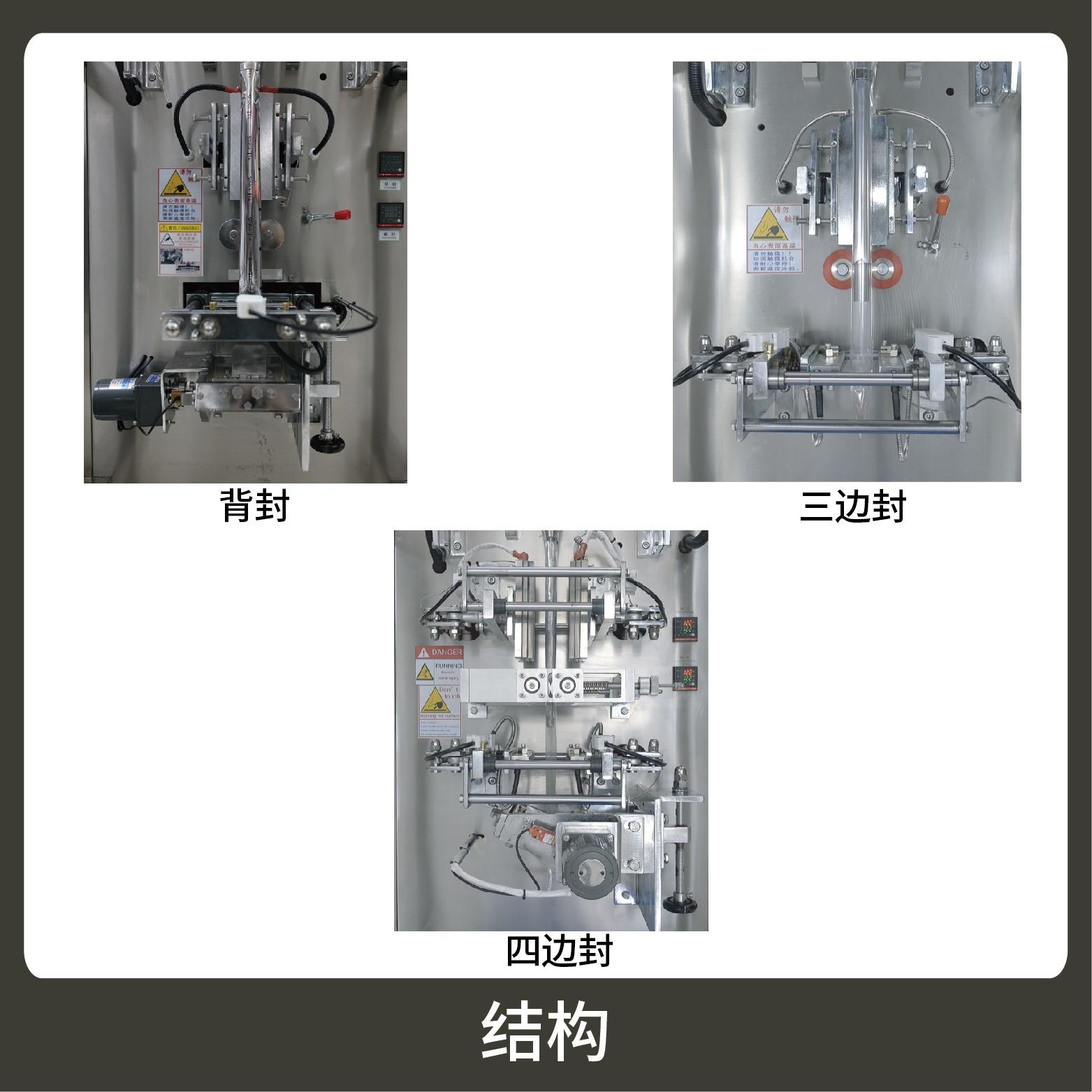 3、觸摸屏操作,PLC 控制,驅(qū)動(dòng)步進(jìn)電機(jī)控制袋長(zhǎng),性能穩(wěn)定、調(diào)整方便、檢測(cè)準(zhǔn)確。智能式溫控儀,PID調(diào)節(jié),保證將溫度的誤差范圍控制在1℃以?xún)?nèi)。